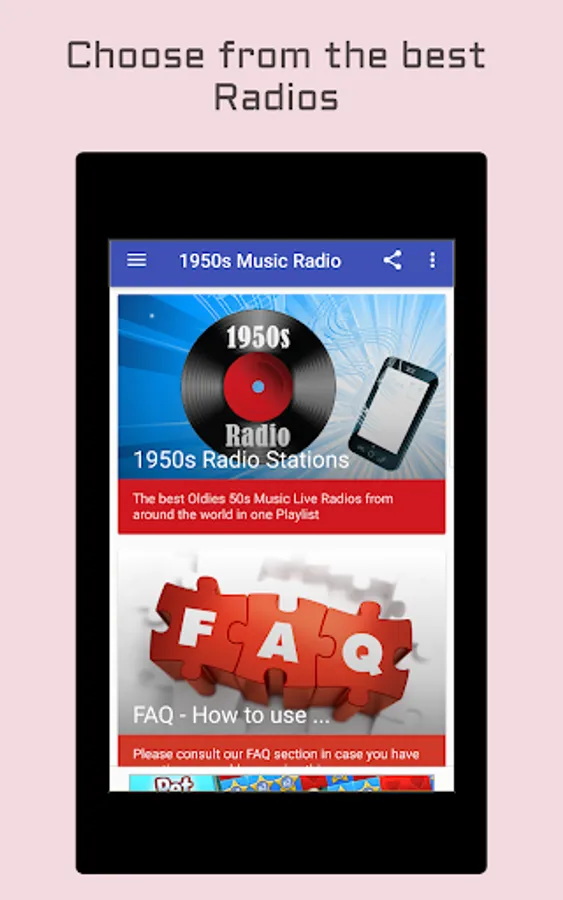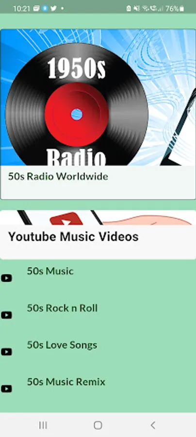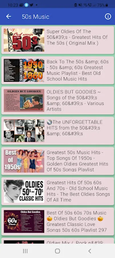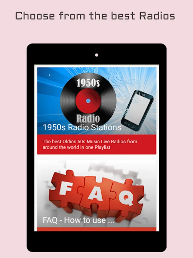 Listen to top Music from 50s on your android device. Get access to the best Fifties Radio Stations for Free and enjoy Rock and roll, Classic Pop, Bluegrass and all the other great tunes from the 1950s!
