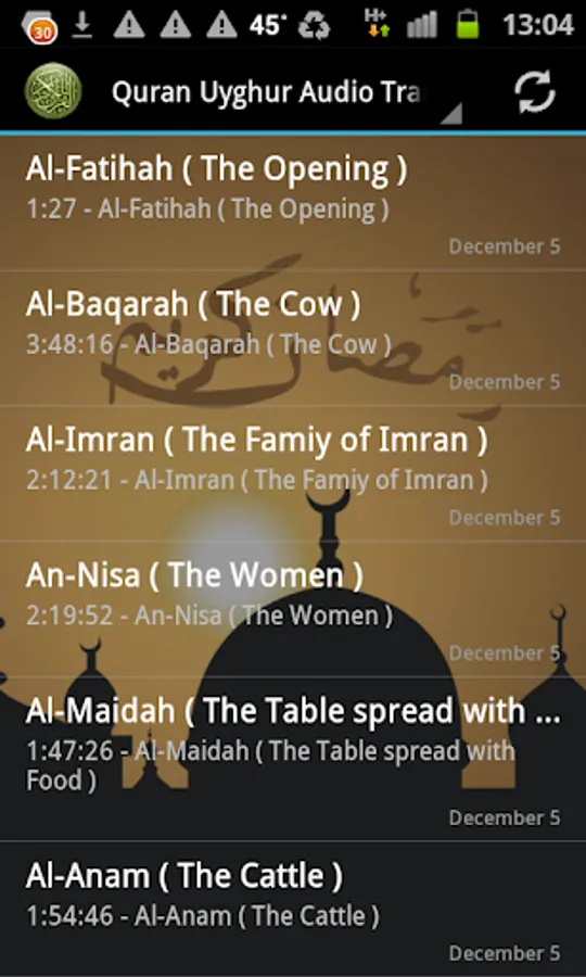 All audio files are the complete sets of the Holy Qur'an along with an Uyghur Verse-by-Verse translation