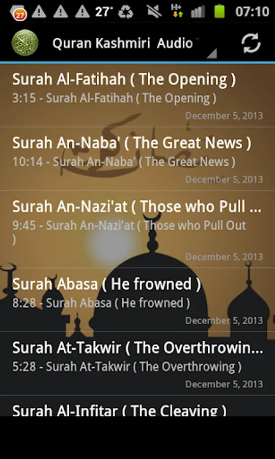 All audio files are a sets of the suras of the Holy Qur'an along with an Kashmiri Verse-by-Verse translation