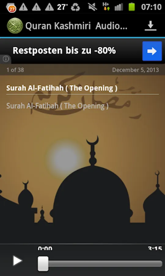 Please note: Currently there are not all suras included. The app will automatically be updated, when more audio files are added.