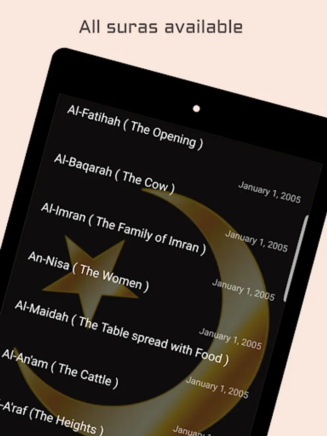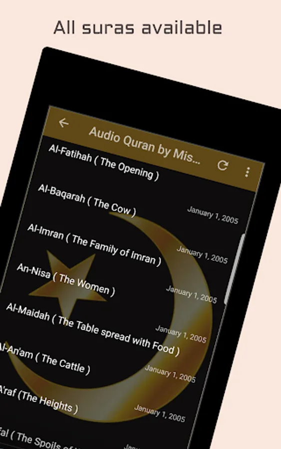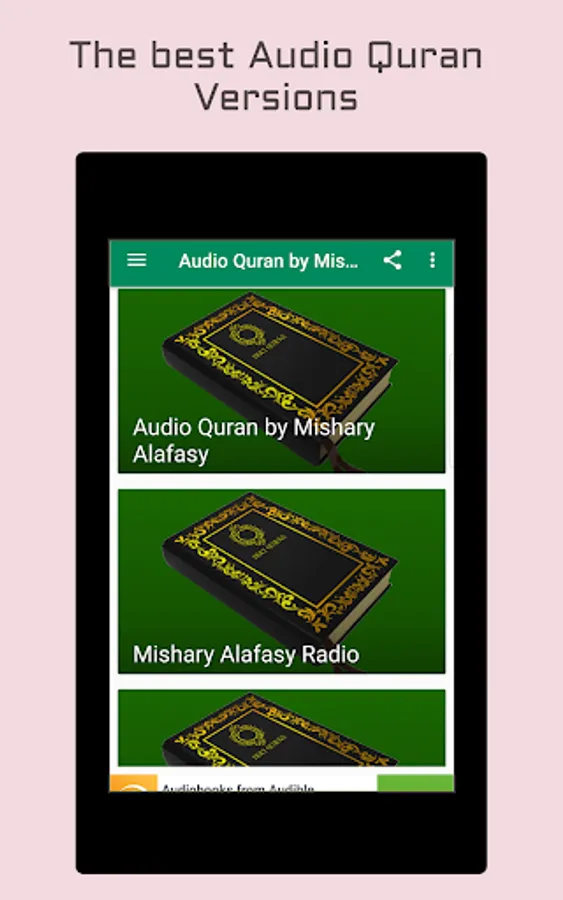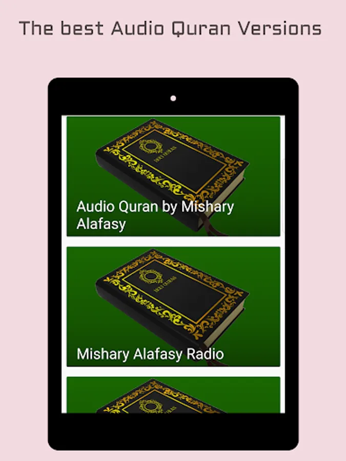 This App contains the complete Qur'an Karim in High Quality MP3 audio by the famous Quran reciter Mishari Rashid al-`Afasy.