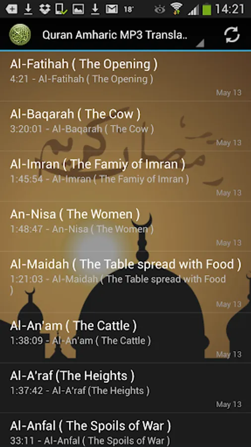 All audio files are the complete sets of the Holy Qur'an along with an Amharic Verse-by-Verse translation