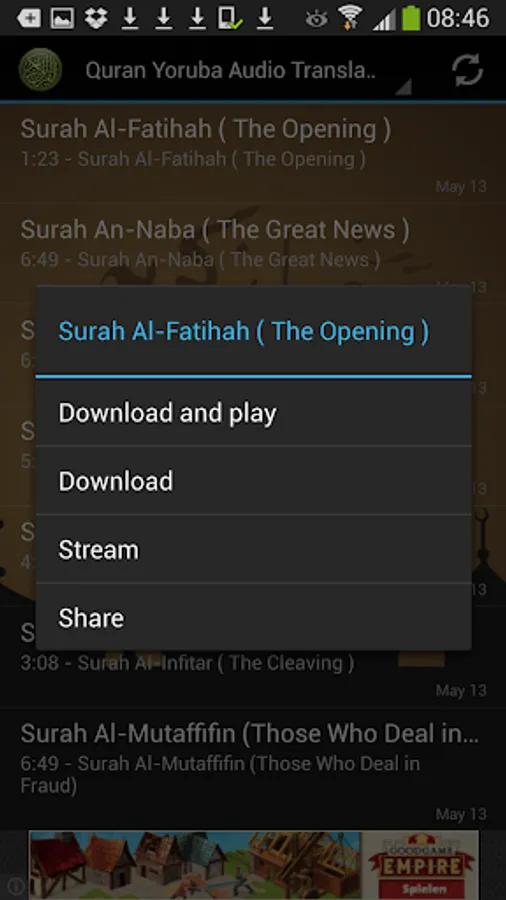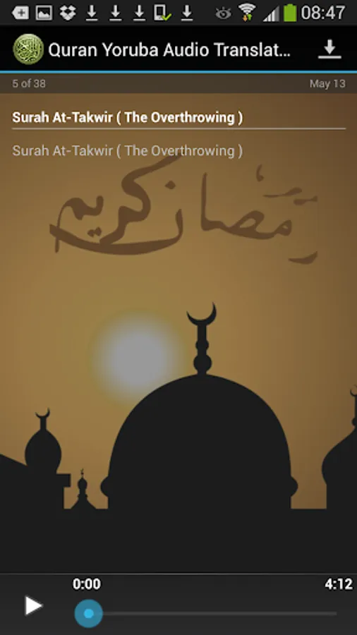 This App is your unique mobile source for high quality MP3 translations of the meanings of the Qur'an in Yoruba