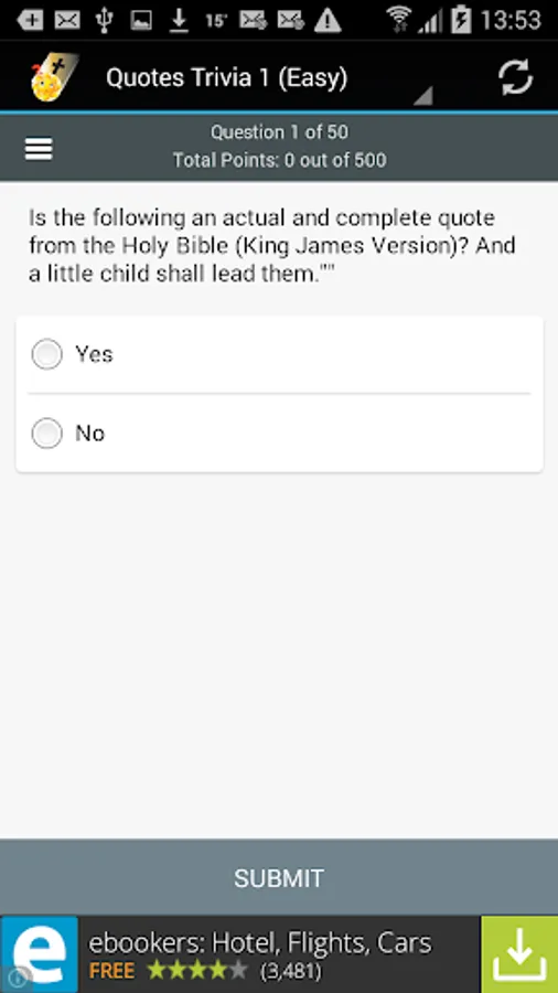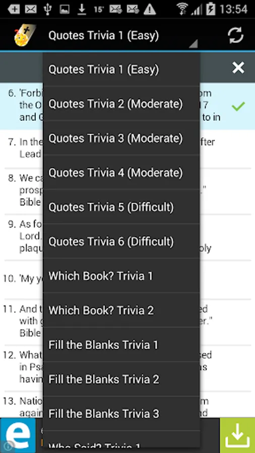 To make the app as small as possible (super fast download and less space on your device needed) we are hosting all questions for this Bible Quotes Trivia on our servers.