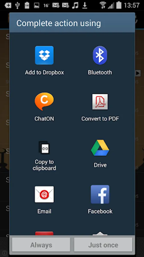 To share audio files, press long, select share to see options.