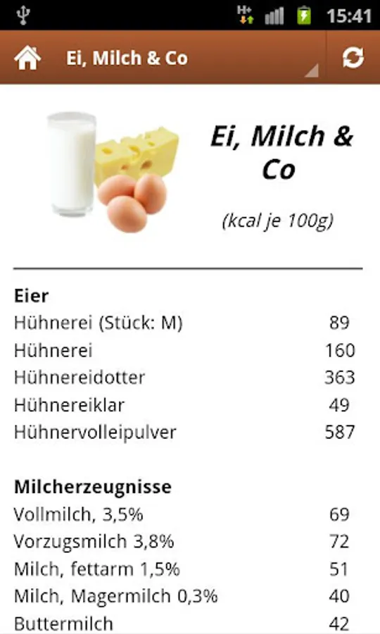 Have you always wanted to know how many calories certain foods? Looking for an easy listing of calorie values without complicated calculation functions and confusing forms of representation? In this app all calorie values are divided into categories, and provided in a simple tabular form for browsing. All values are listed in kcal and apply to 100g of the foodstuff.