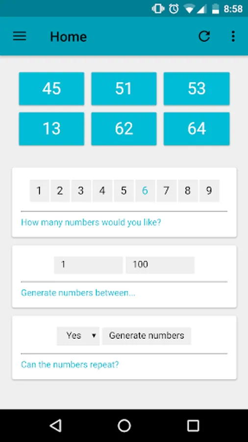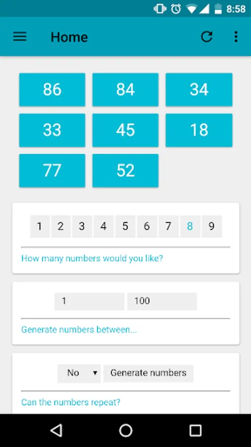 Includes the ability to use the app offline and choose to allow repeating numbers.