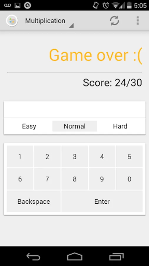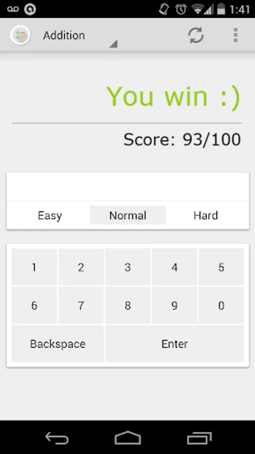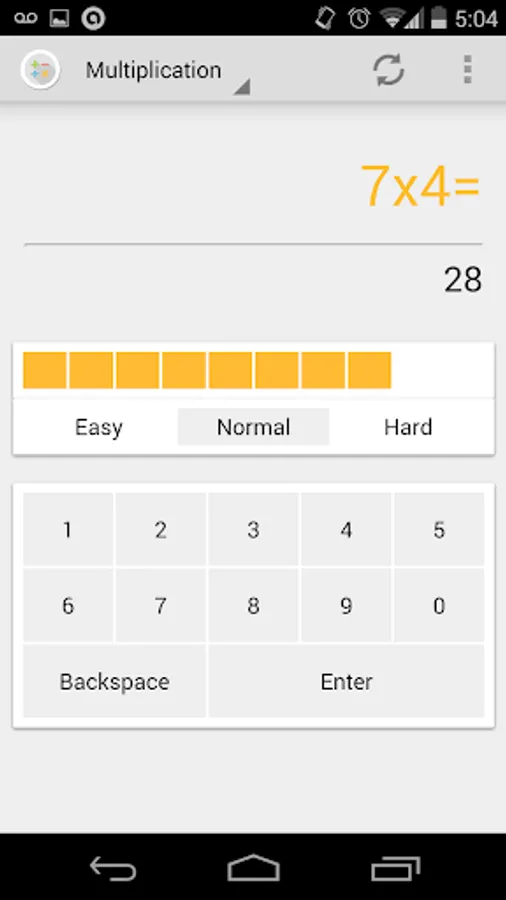 Practice solving math equations to keep your math skills sharp. This math quiz game allows you to practice your addition, subtraction, multiplication and division by solving math equations at three game levels: easy, normal and hard.
