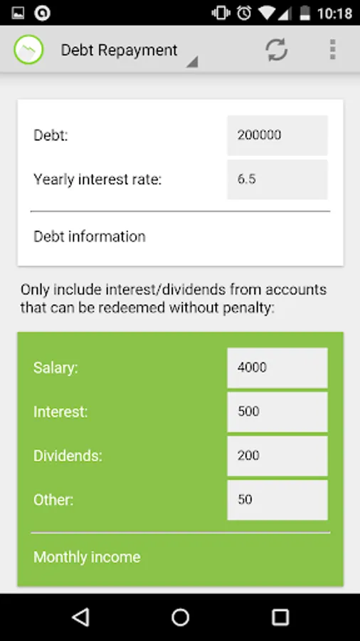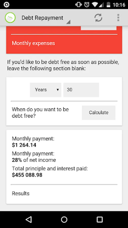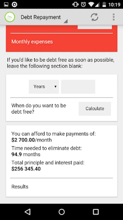 Debt Repayment is a debt management and repayment tool. List your outstanding debt, interest rate, monthly income and monthly expenses, and a result tailored to your criteria will be calculated. Figure out what your monthly payments need to be, how soon you'll be able to pay off your debt, and how much you'll be paying in total.