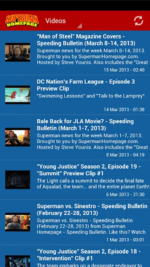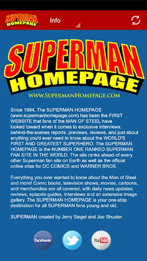 Since 1994, The SUPERMAN HOMEPAGE has been the first website that fans of the MAN OF STEEL have looked toward when it comes to exclusive interviews, behind-the-scenes reports, previews, reviews, and just about anything you'd ever need to know about the WORLD'S FIRST AND GREATEST SUPERHERO. The SUPERMAN HOMEPAGE is the NUMBER ONE RANKED SUPERMAN FAN SITE IN THE WORLD and is now available as an Android app!