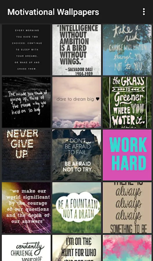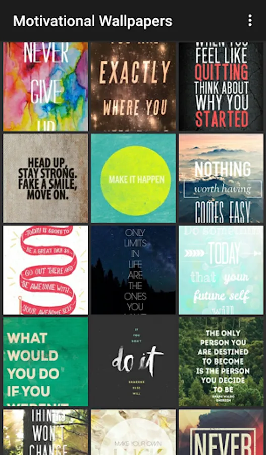 Whether it's making that big career change or simply making it to the gym, stay motivated with a little reminder from these amazing backgrounds! The colorful wallpapers in this app feature powerful quotes, phrases and images to keep you on the path to meeting your goals!