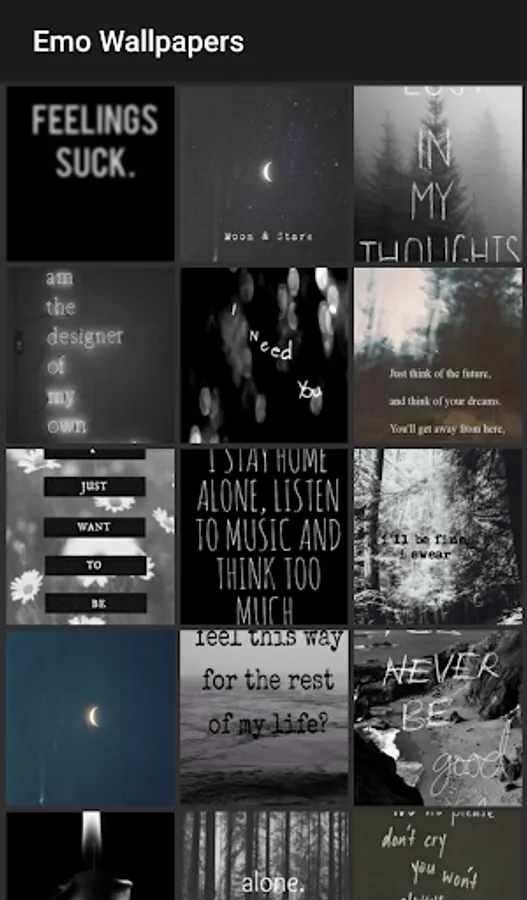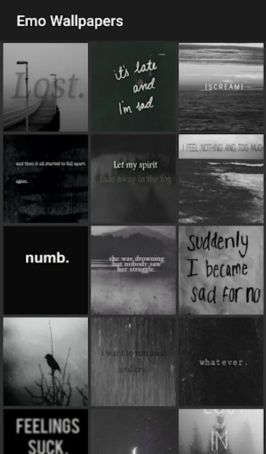 The wallpapers in this app won't try in vain to cheer you up or make you just like everyone else. The somber black and white pictures and words in these apps reflect the pain and loneliness of human existence.