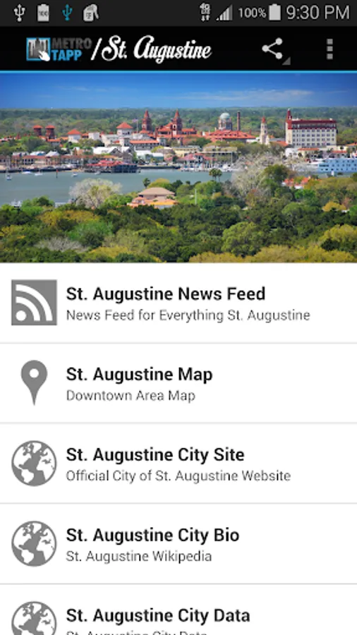 The Official MetroTapp App of St. Augustine, FL - Updated News Feeds, Events, City Data, City Bio, Places to See, Classifieds, Job Listings, Real Estate, Rentals, Nightlife, Popular Sites to See, Links and More - Download Today and Get Everything St. Augustine, Fl with a Tap of a button - App by MetroTapp.com - Exclusive to Google Play