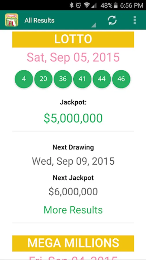 Florida Lottery winning numbers and results for Florida Lotto, Mega Millions, Powerball, Mega Money, Fantasy 5, Play 4, and Cash 3.