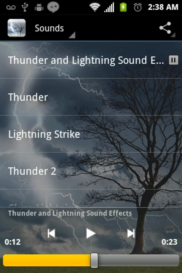 Lightning Strikes and Thunder effects. This soundboard also has scary thunderstorms and rain sounds blended in.