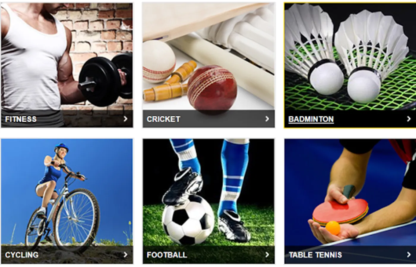 The collection includes popular brands like Yonex, Adidas, Nivia, Cosco, Quechua etc and it also contains a wide category exclusive for cricket, football, badminton, table tennis etc.
