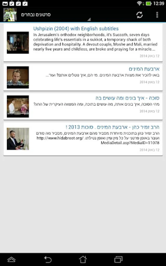 * Chosen Youtube movies for Sukkot.