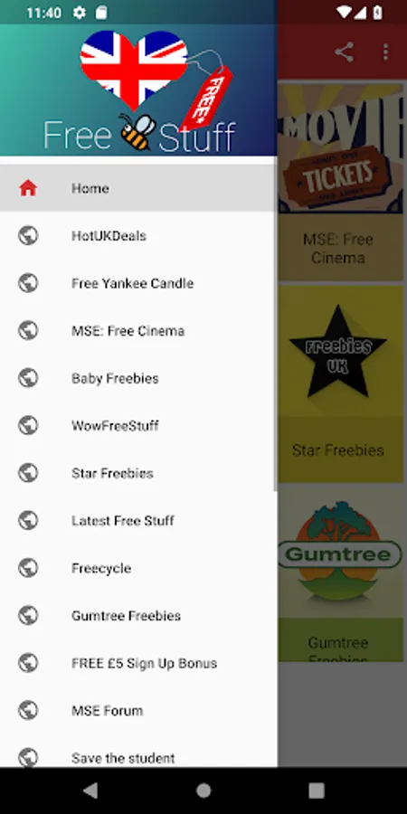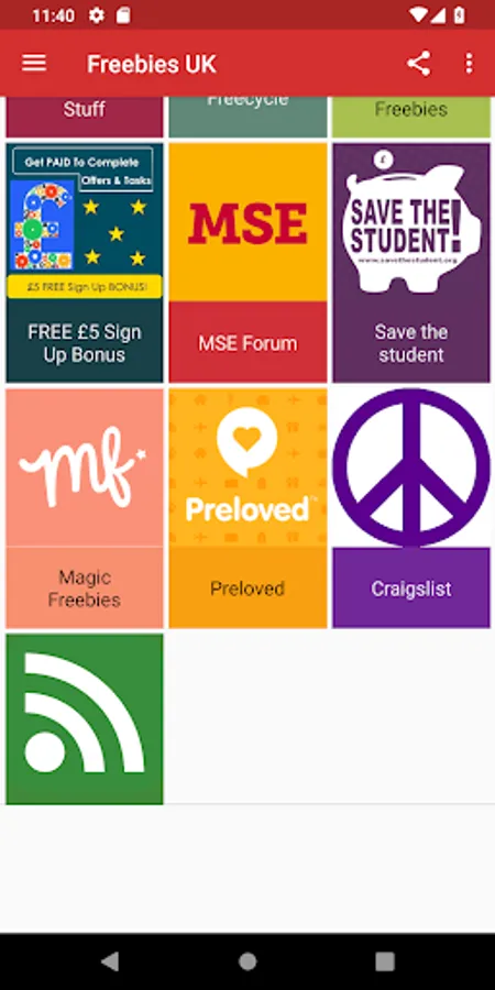 Currently includes: Hot uk deals, free cinema tickets (MSE), Student money saver, Save the student, free-stuff, Gumtree, Money Saving Expert, Magic Freebies, Freecycle, Preloved & more.