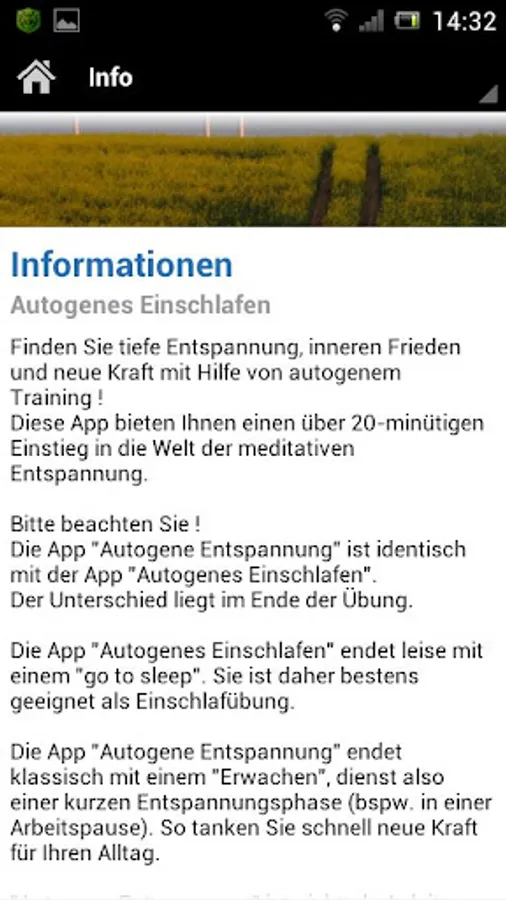 The app "Autogenic asleep" ends quietly with a "go to sleep". It is ideal as an Einschlafübung.