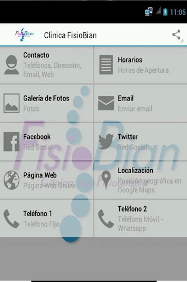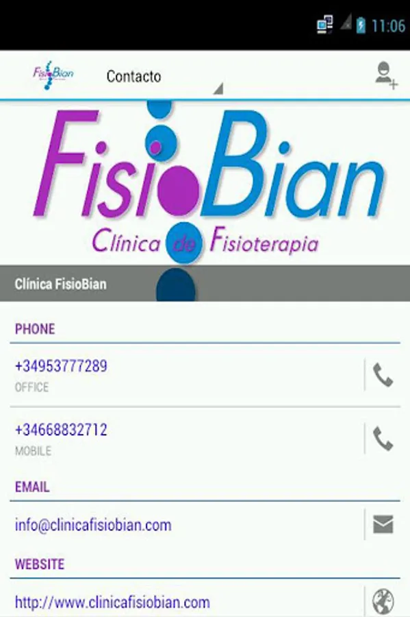 In this app you will find information about physiotherapy and osteopathy clinic as Contact Location, Social Networks, Photo Gallery, Opening, Website, etc..