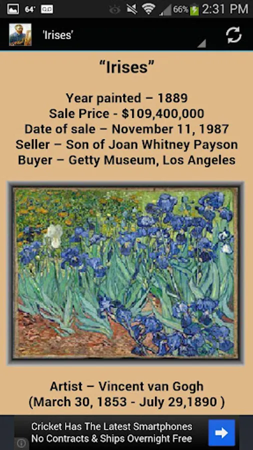 Van Gogh sold only one of his paintings during his lifetime for the princely sum of 400 francs, about $78 in U.S. currency at the turn of the 19th century. Today, his four entries in this exclusive list of million plus artworks have a total value of 471 million dollars.