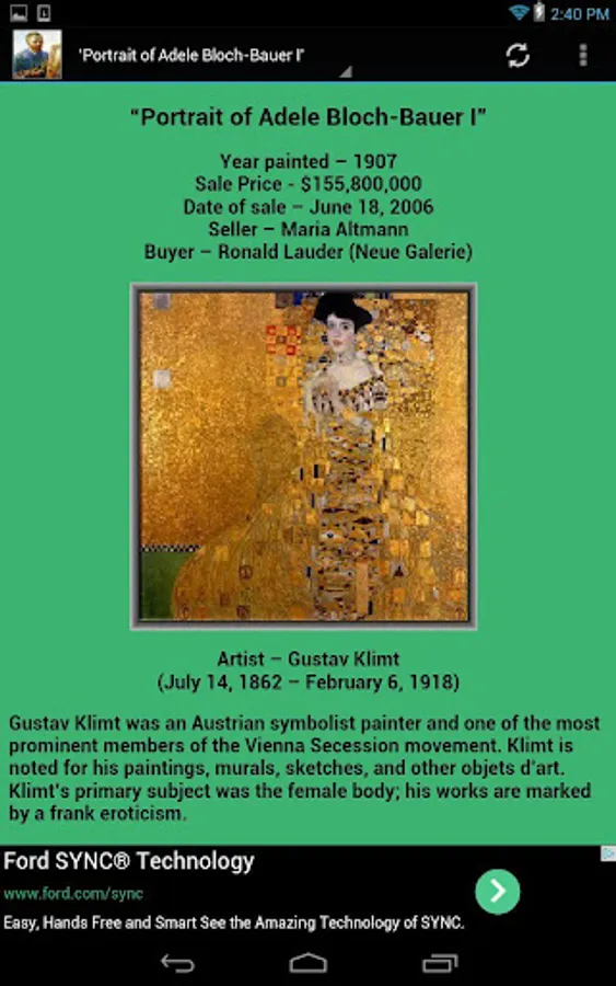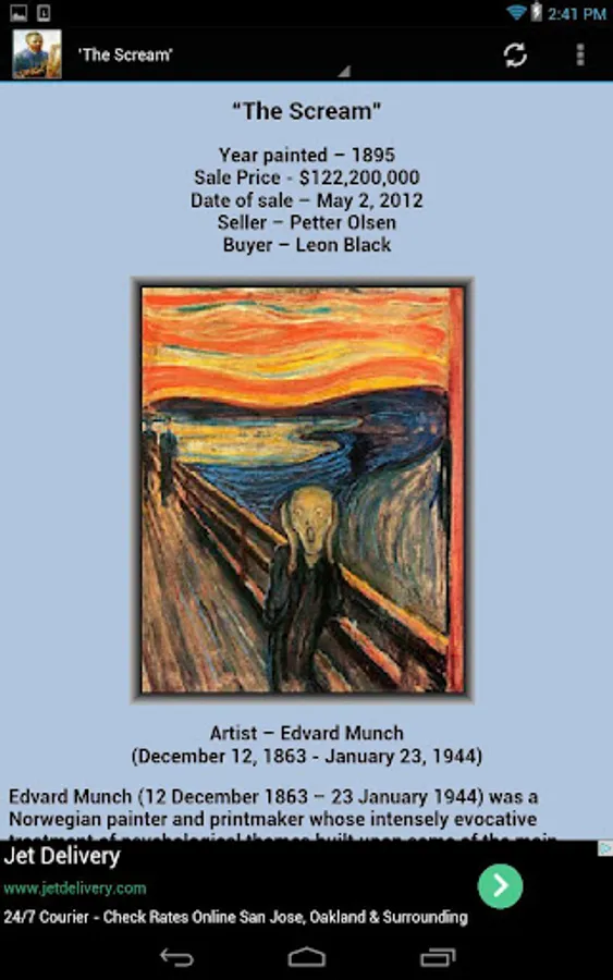 Gustav Klimt, Francis Bacon, Pierre Renoir, Edvard Munch and Barnett Newman round out the remaining members of the Million Dollar Plus Club.