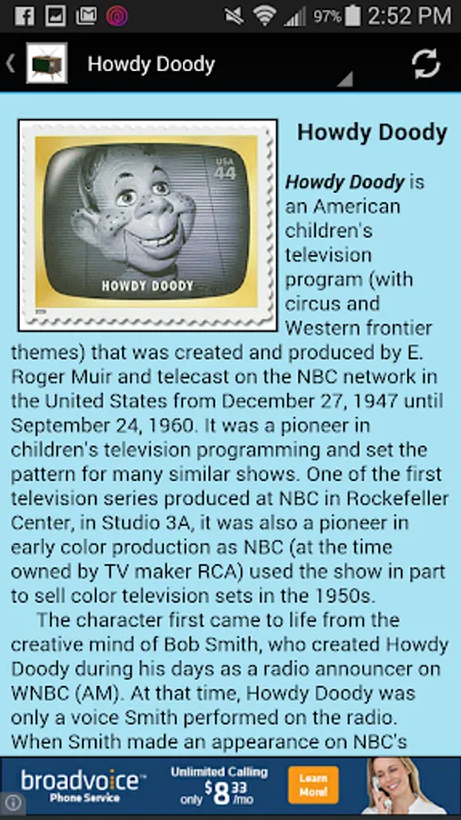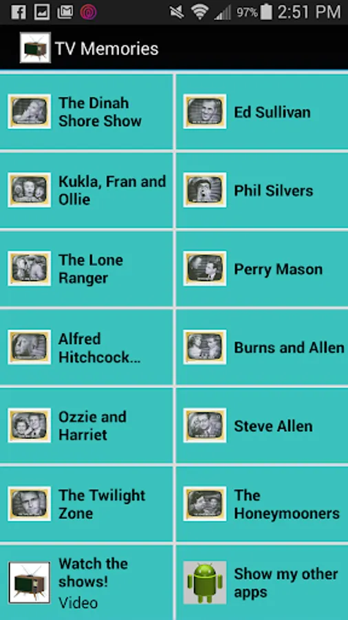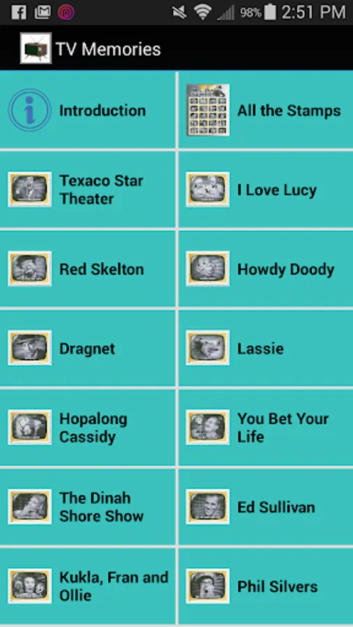 In 2009 the United States Postal Service issued a twenty stamp commemorative sheet of 44¢ stamps. It portrayed 20 of the most memorable early television shows. I Love Lucy, The Ed Sullivan Show, Burns and Allen, Dragnet and 16 other old timers are listed in this app. Images of their commemorative stamps, a biography of the show and actual recordings of their early TV productions are all included. Journey back to the '40's, '50's and '60's and revisit the TV shows you enjoyed growing up.