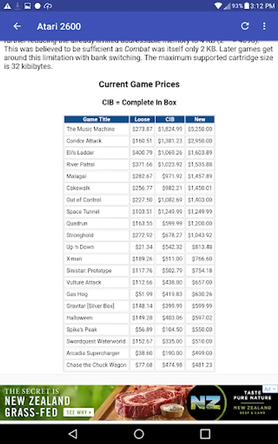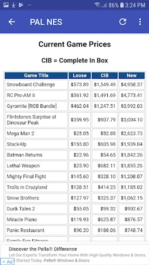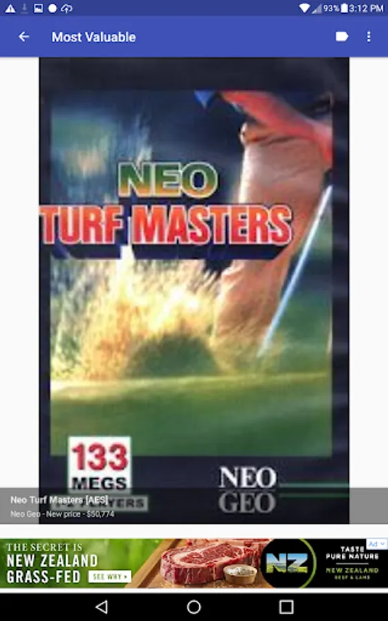 This application zeroes in on just ten popular machines and lists the most valuable games created for that console. They range from Neo Geo’s “Neo Turf Masters [AES]” presently valued at over $50,000 for a copy in new condition to Game & Watch’s “Super Mario Bros. [YM-801]” selling for $1,600.