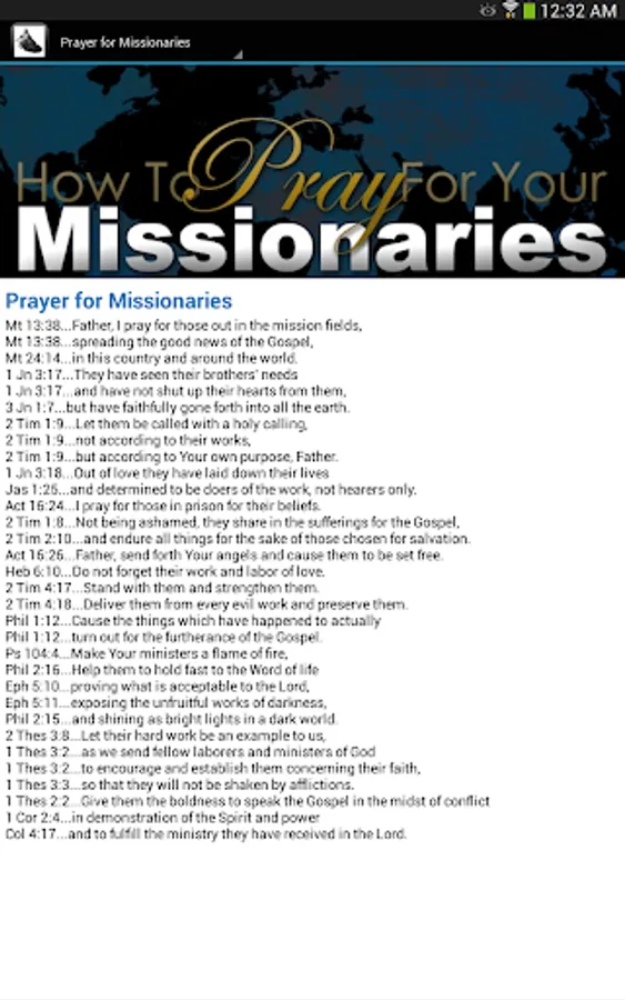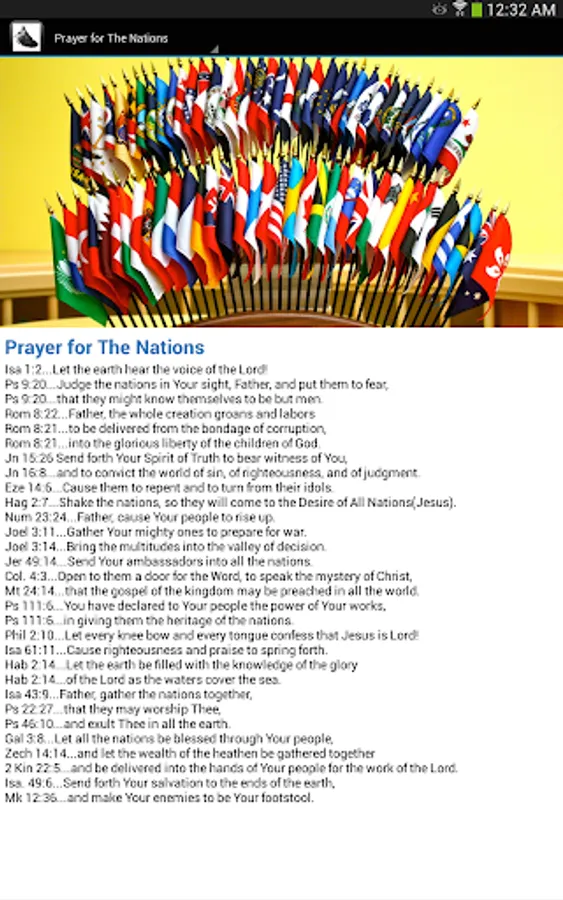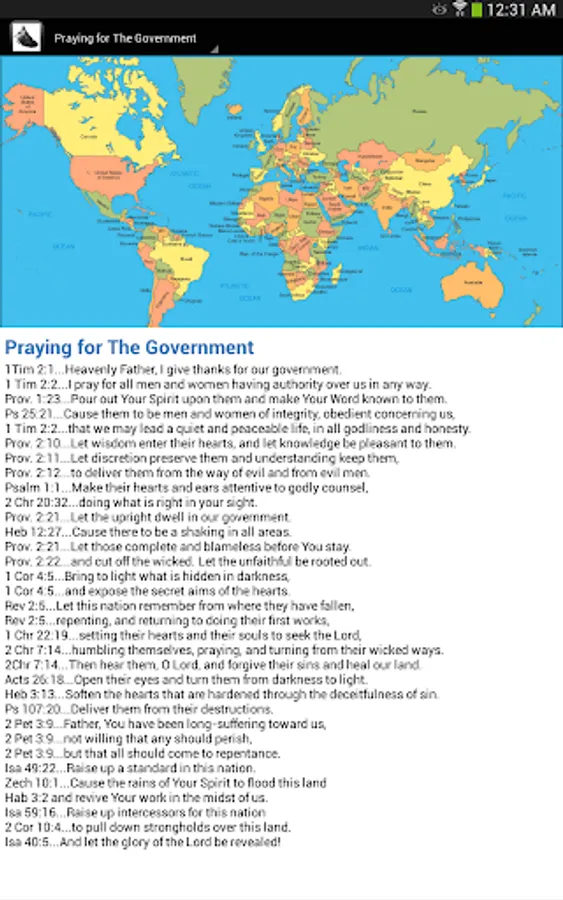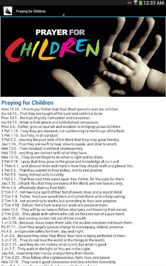 The purpose of this app is to help people to pray the Word of God which is the Bible. Hebrews 4:12 says that God's Word is alive and powerful, sharper than a two-edged sword. When we speak and pray the Scriptures, we are coming into agreement with God, and His power is released to answer our prayers.