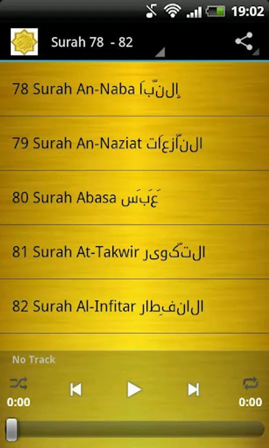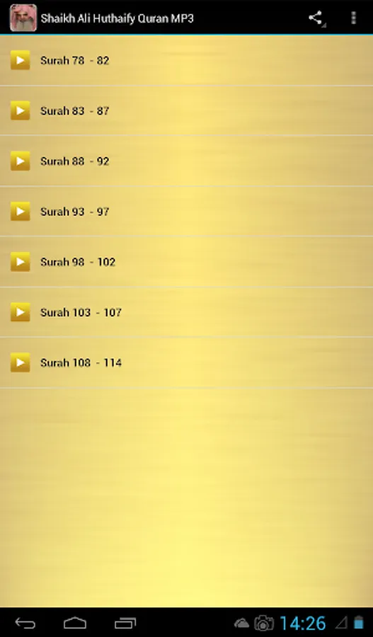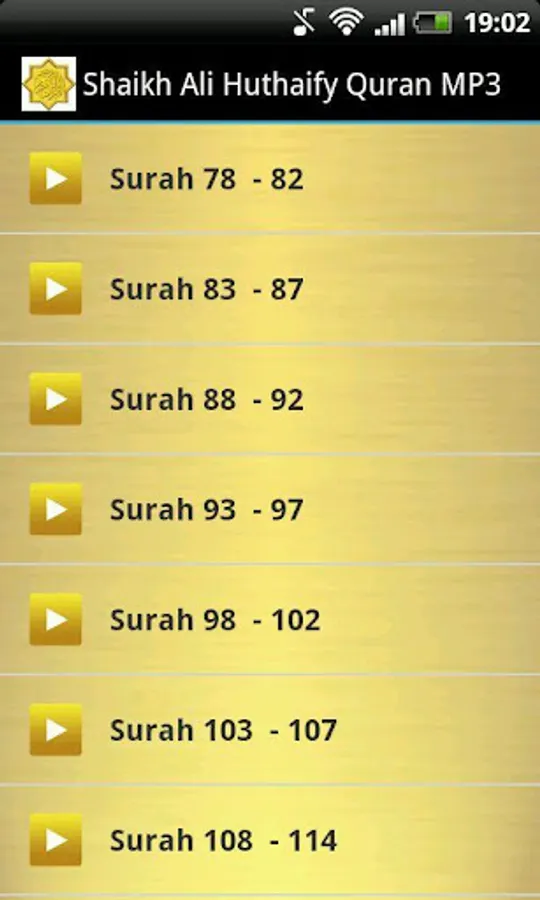 This app lets you listen to the recitation of Juz Amma, from the Holy Quran by Sheikh Ali Al Huthaify. Requires no downloads or streaming just install the app and select the surah to listen.