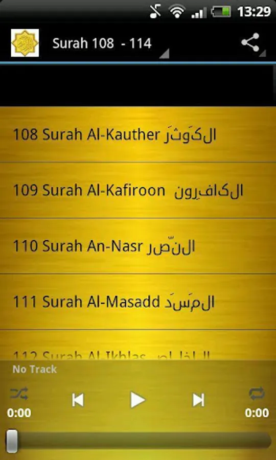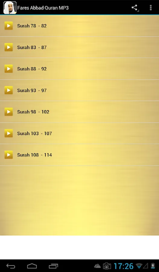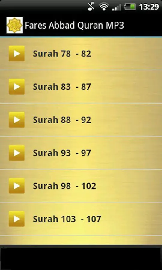 This app lets you listen to the recitation of Juz Amma, from the Holy Quran by Fares Abbad. Requires no downloads or streaming just install the app and select the surah to listen.