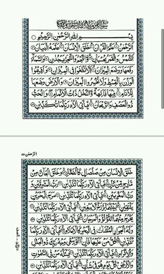 "Whoever reads Surah Ar Rahman, Allah will have mercy on his weakness and be regarded as having thanked Allah for it"