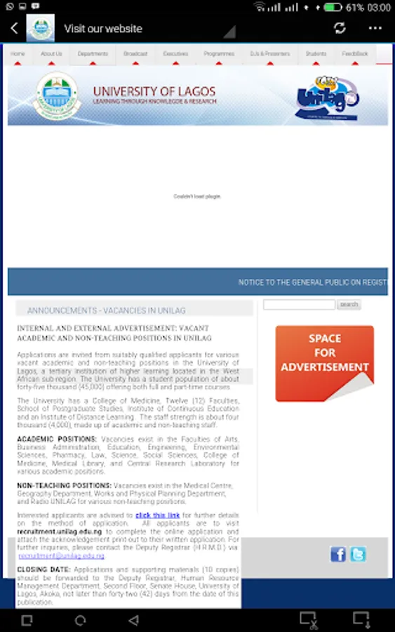 To this end, Unilag 103.1FM is conscious of her responsibility towards her community which is, first her audience on campus and secondly the audience all over the country.