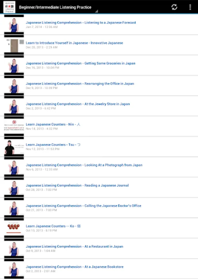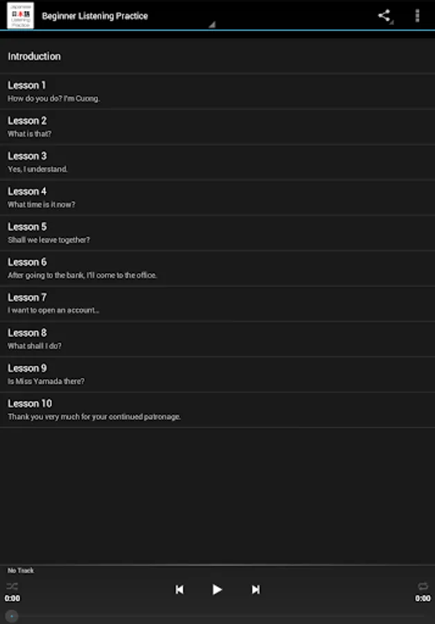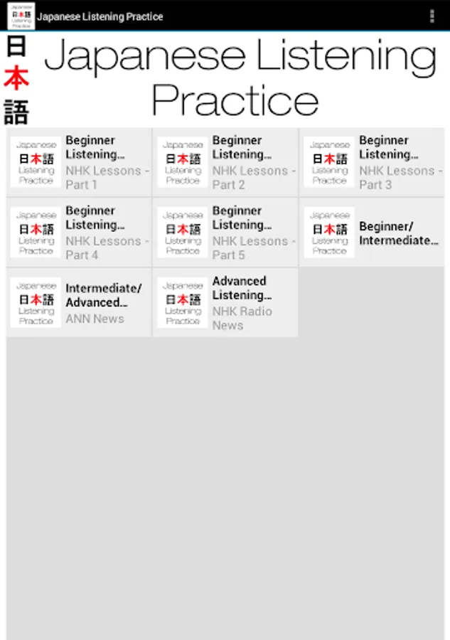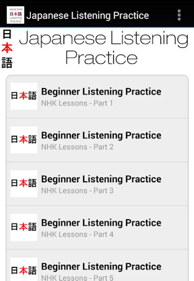 *Over 50 different beginner and intermediate lessons covering a broad range of Japanese words, phrases, grammar, and pronunciation