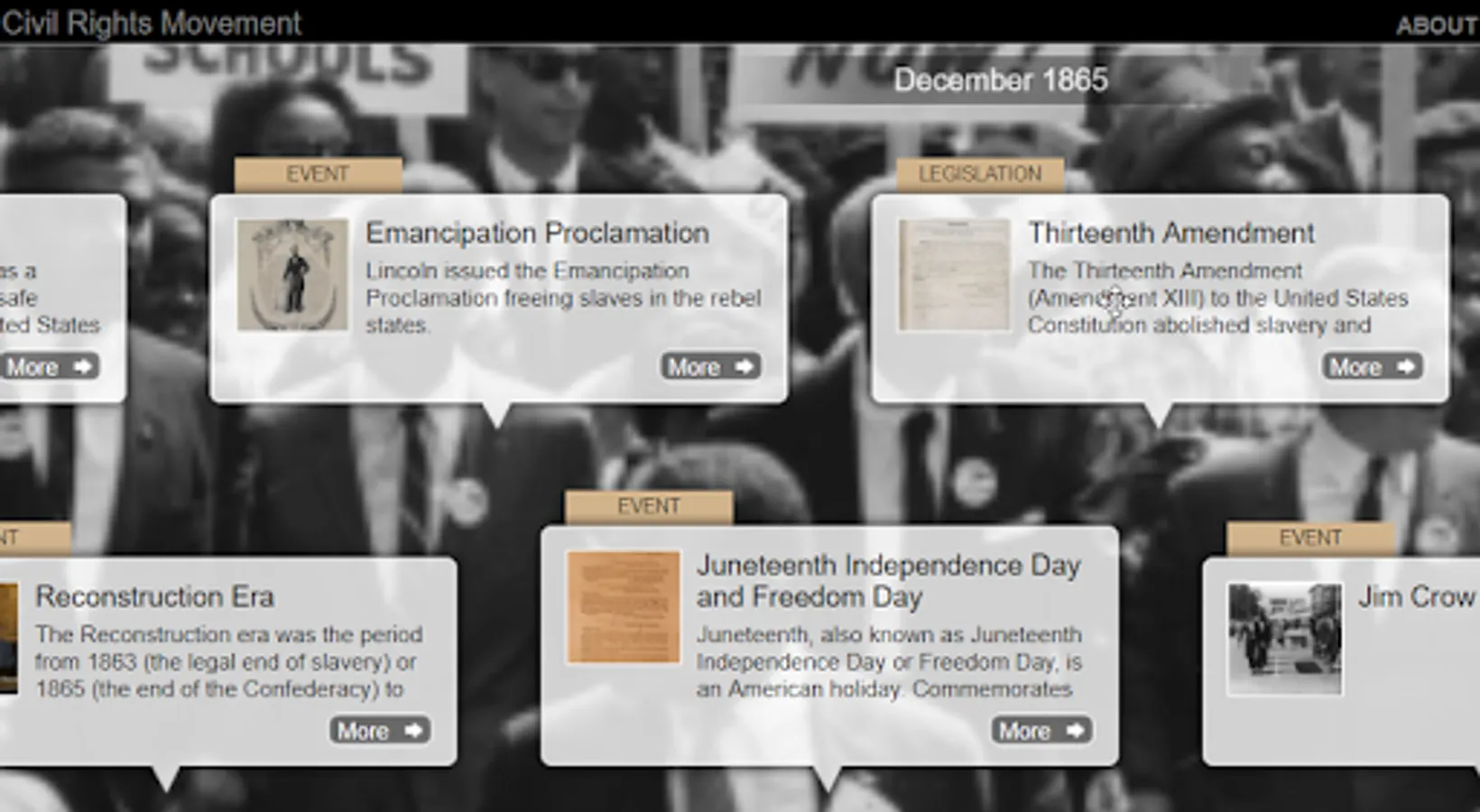 Interactive timelines that you control on your phone or tablet with allow you to scroll through the centuries make it easy to explore this important American history.