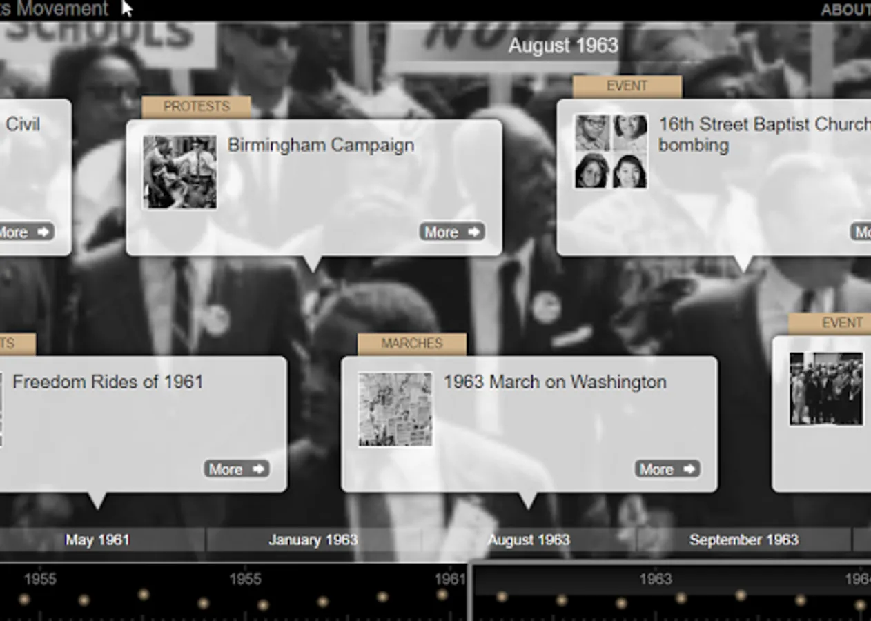 Featuring videos of important in Civil Rights Movement history and historical photos and pictures, key events in the Civil Rights Movement are explained and relived.