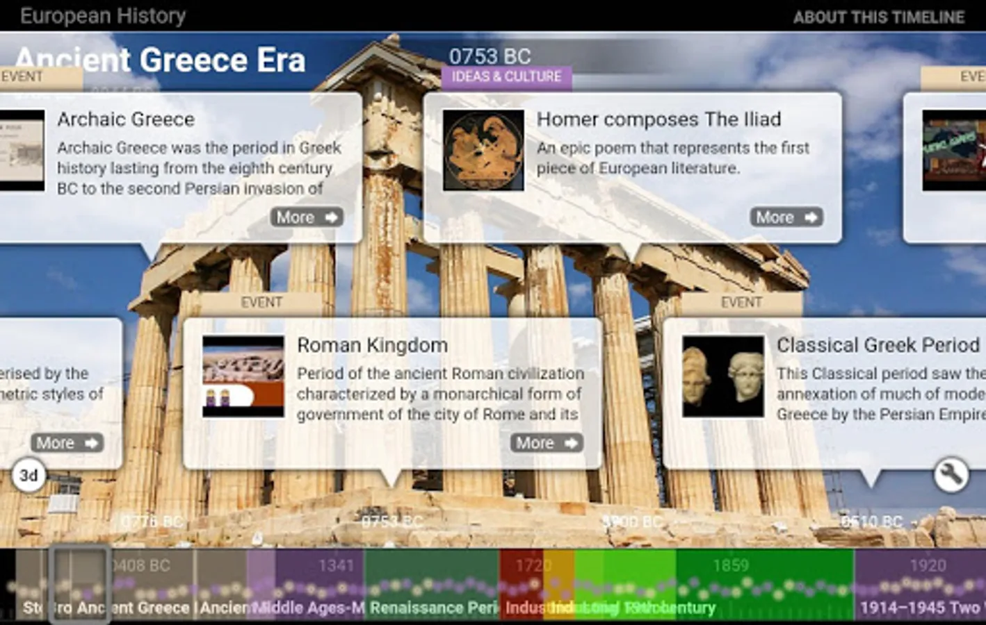 Interactive timelines that you control on your phone or tablet with allow you to scroll through the centuries make it easy and fun to explore history.