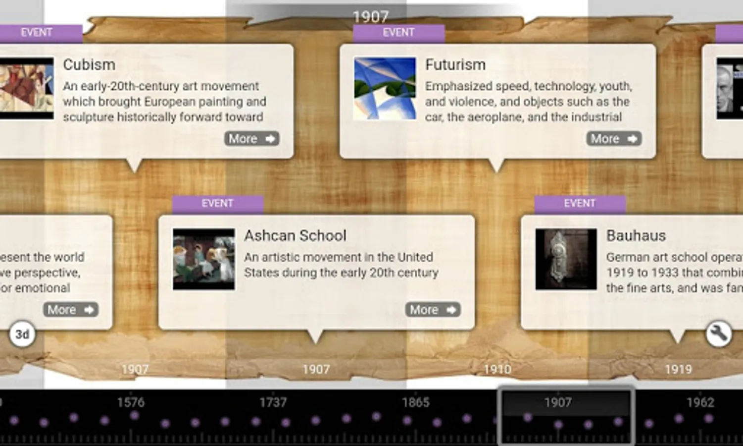 Featuring videos of important events art history and historical photos and pictures, key events in the art can be explained and relived.