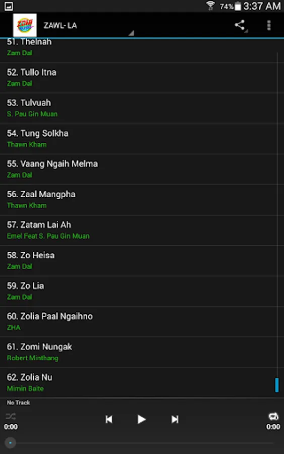 Zomi ten Pasian La, Gam Ngaih La, Zawl La, Nu leh Pa Itna La, Pasian Thu Genna leh Zomi Gam/Minam vai thu leh la tuamtuam te nuamtak leh baihlam tak in i ngaih theihna ding lunggulhna leh deihsak na ahi hi. Pasian in phat-tuam na hongpia tahen.