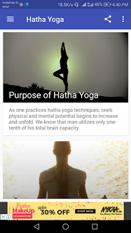 This app guides you to practice Hatha yoga. Both text and video guides have been provided in the app for better understanding of asanas. Download it, give a try and get benefited.