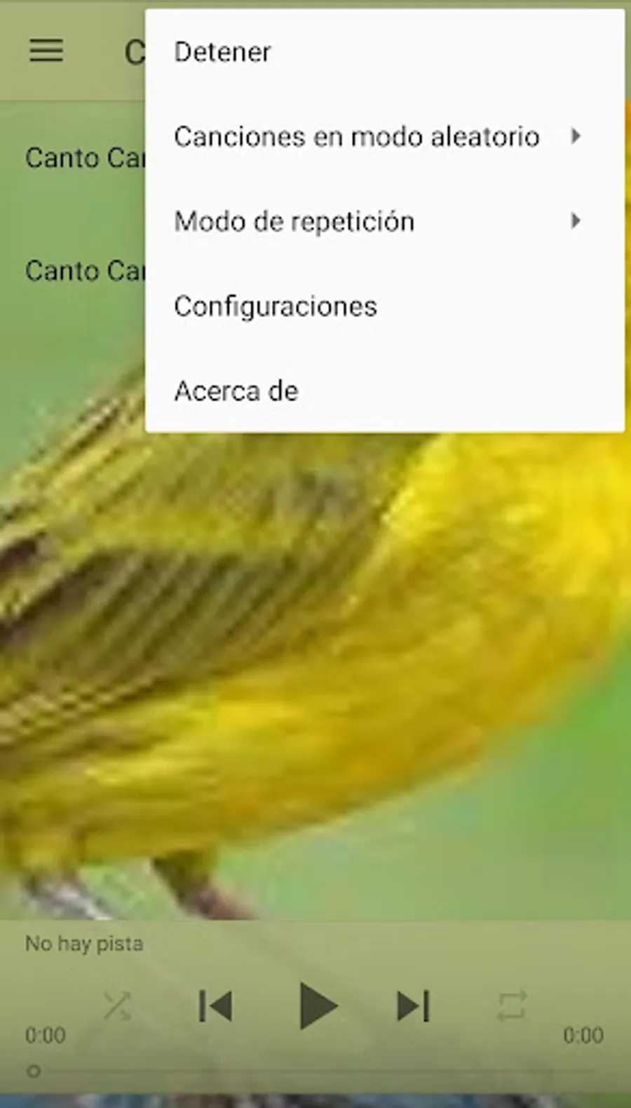 The application includes several canaries sounds with which you help your canary to improve your singing.