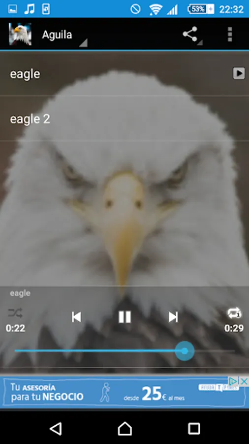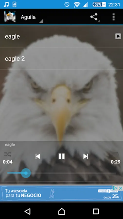 With the application Eagle Ridge You can simulate the real sound of an eagle. The application includes several sounds of considerable duration that makes you to hear this wonderful song.