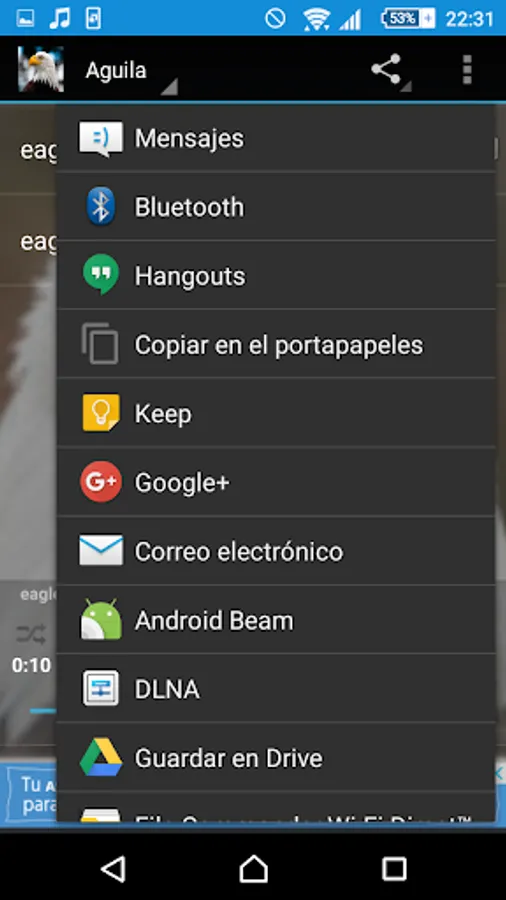 You also have the option to share songs with your friends by various means sending and whatsapp, email, etc ..