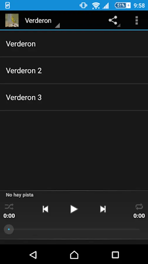 With the application can simulate verderon singing sound so nice of verderon. The application includes several sounds of considerable duration that makes you to hear this wonderful song.