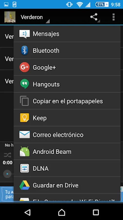 You also have the option to share songs with your friends by various means sending and whatsapp, email, etc ..