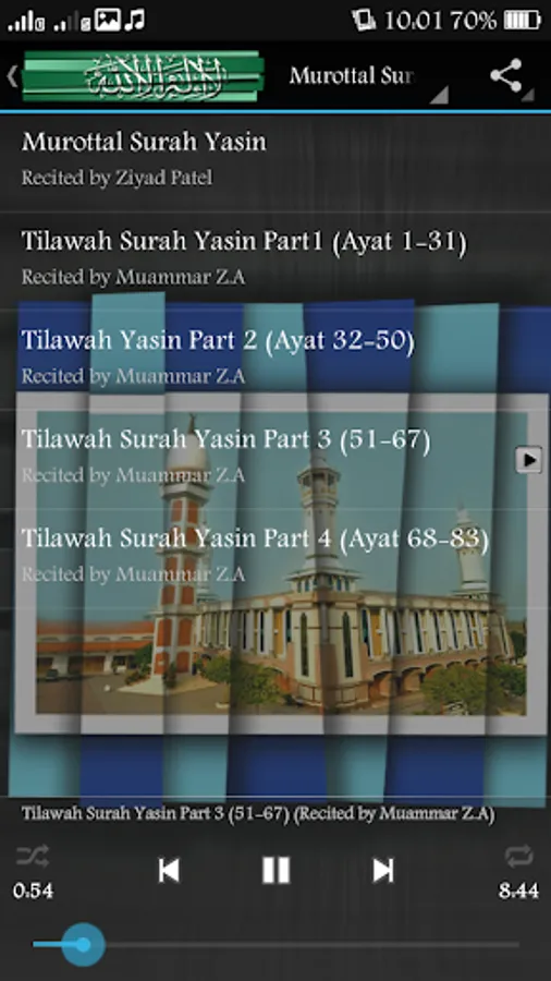 This application note presents a melodious chant IN FULL Yasin from the beginning to the paragraph terakhirdalam Murottal (by Ziyad Patel) and Quran recitations Arts (Muammar ZA.)
