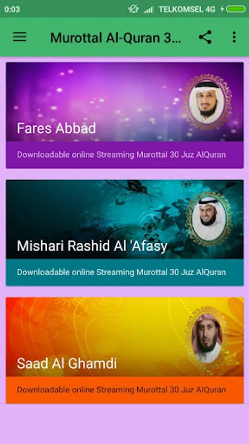 Applications Koran Full murottal 30 chapters that allows you to select the letter or letters memorize the Koran which wants to read.