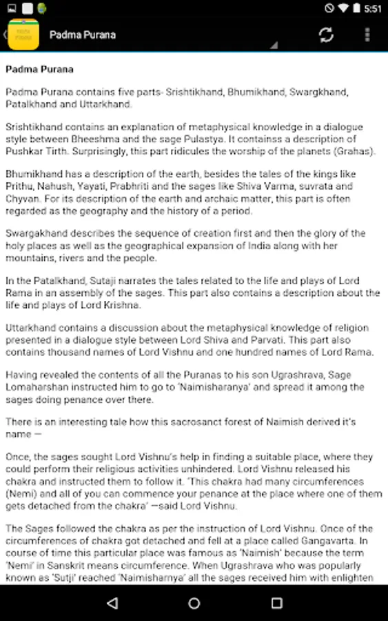 Padma Purana, also called the gītāmāhātmya (literally, the Majesty of Gita) is one of the major eighteen Puranas. The Padma Purana categorizes itself as a Sattva Purana (one which represents goodness and purity).