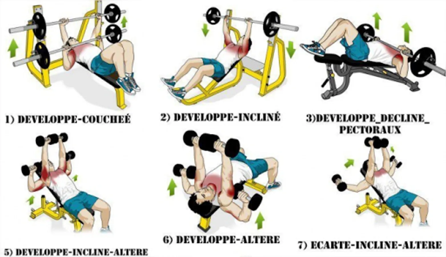 chest workouts, Dumbbell Exercises for the Chest, Clock Push-Up, Incline Push-Up, Push-Up Wide, Push-Ups With Feet Elevated, Barbell Bench Press, Barbell Incline Bench Press, Dumbbell Bench Press, Decline Barbell Bench Press Decline Dumbbell Flyes Incline Dumbbell Flyes Decline Push-Up