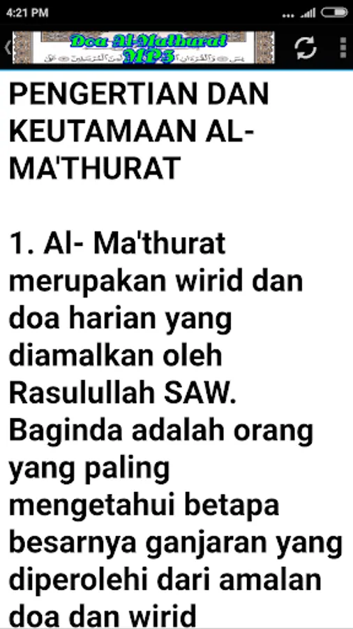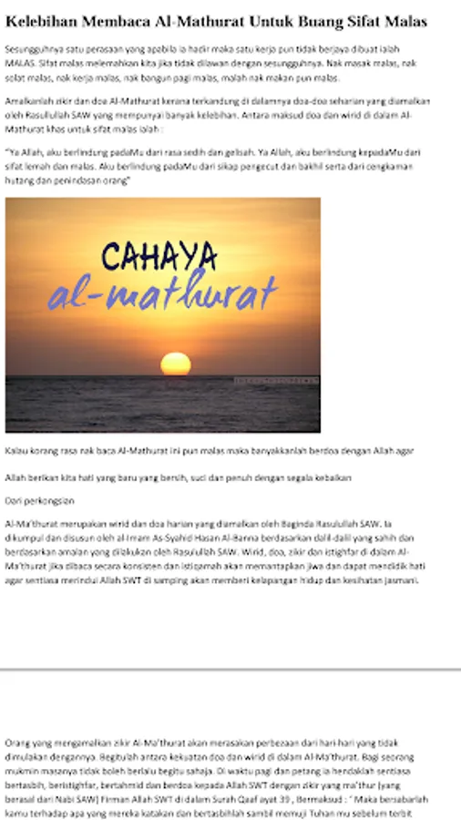 2. Wirid, prayer, remembrance and forgiveness in Al- Ma'thurat will enhance mental well have priority in all aspects of life. Educating hearts to always yearned to Divine and provide living and physical fitness ...
